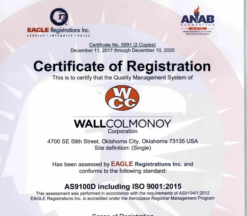 Wall Colmonoy Oklahoma City earns its AS9100 certification. Today, Wall Colmonoy Aerobraze OKC is certified to AS9100 REV D.